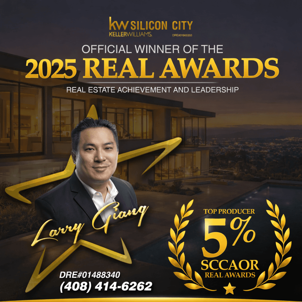Larry Giang has been named an Official Winner of the 2025 REAL Awards by the Santa Clara County Association of REALTORS, placing him among the Top 5% of real estate producers in the region.